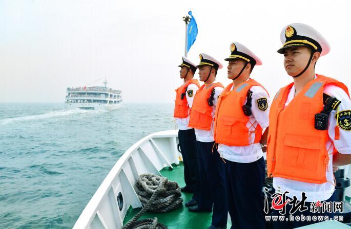 进入旅游旺季以来,秦皇岛海事局海巡船艇和执法人员采取24小时定点值守与动态巡航相结合的方式,对秦皇岛港煤炭码头、主航道、沿岸旅游区等水域进行重点监管。图为近日秦皇岛海事局执法人员为大型旅游船艇护航。耿现晨 聂晓摄