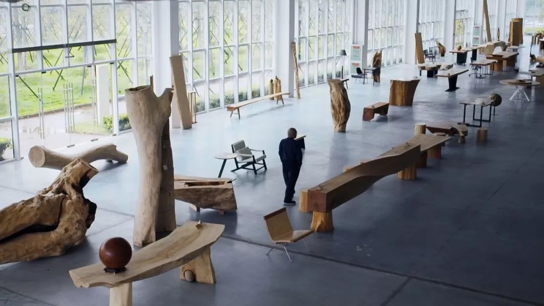 我在浙江嘉兴做了一个木头工厂,大概10万平方米,总共超过10000根木头。这些都是生长了100年以上的巨型原木,直径都超过1米,比如说榉木、桧木、栎木、樱木、七叶木……