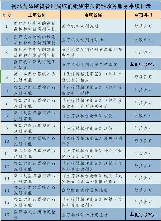 从河北省药监局获悉,为深入推进“放管服”改革,积极优化营商环境,提升便民服务水平,该局印发公告,决定自2020年12月10日起,取消医疗机构制剂注册等16项政务服务事项纸质申报资料,实行全程网办。