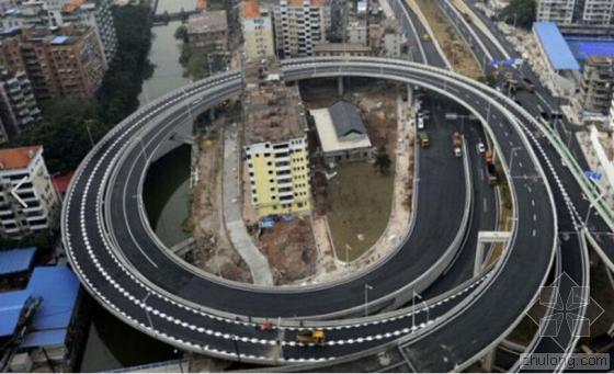 绕圈式引桥能确保行车安全,缺点是占用土地。在洪德立交,一栋刚好被绕圈式引桥“包围”起来的8层居民楼,被网友取名“圈中楼”。“好惨啊,住系里面D人,以后咪吵死?”网友担忧起楼内住户。